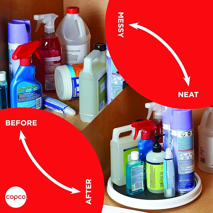 Copco Basics Non-Skid Pantry Cabinet Lazy Susan Turntable, 12-Inch, White/Gray, 1 Count (Pack of 1)