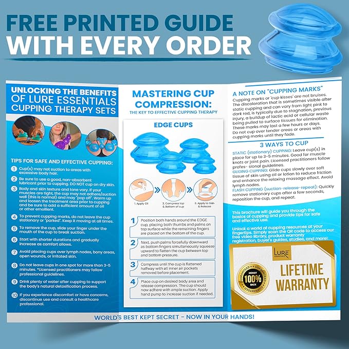 - Extra: Access to a complete video library. Whether you're a professional therapist or a home user, this cupping set for massage therapy provides everything you need for efficient and safe cupping treatments. Discover the Lure Essentials difference in cupping therapy.