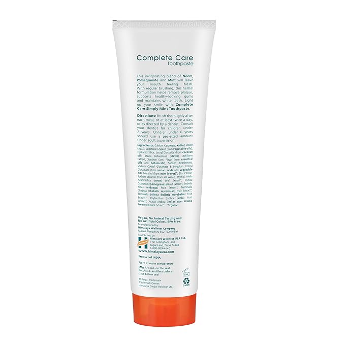 Himalaya Botanique Complete Care Toothpaste, Herbal, Mint Flavor, Fights Plaque, Freshens Breath, Fluoride Free, No Artificial Flavors, SLS Free, Cruelty Free, Foaming, 5.29 Oz, 1 Pack