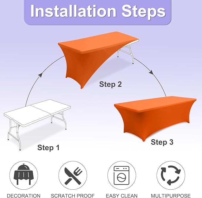 - 3.Which One Should You Choose?: Whether you're using for everyday use in your home or in commercial establishments such as restaurants, hotels and cafes. Our inexpensive rectangle spandex table covers which have the size of 4FT, 5FT, 6FT, 8FT and multicolor will match your table and decor perfectly. Table covers in multipacks are even more cost effective because after taking into account the cost of packaging and transportation.