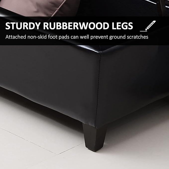 HOMCOM 51" Ottoman Storage Bench, Faux Leather Storage Chest with Lift Top, Tufted Ottoman for Living Room, Entryway, Black