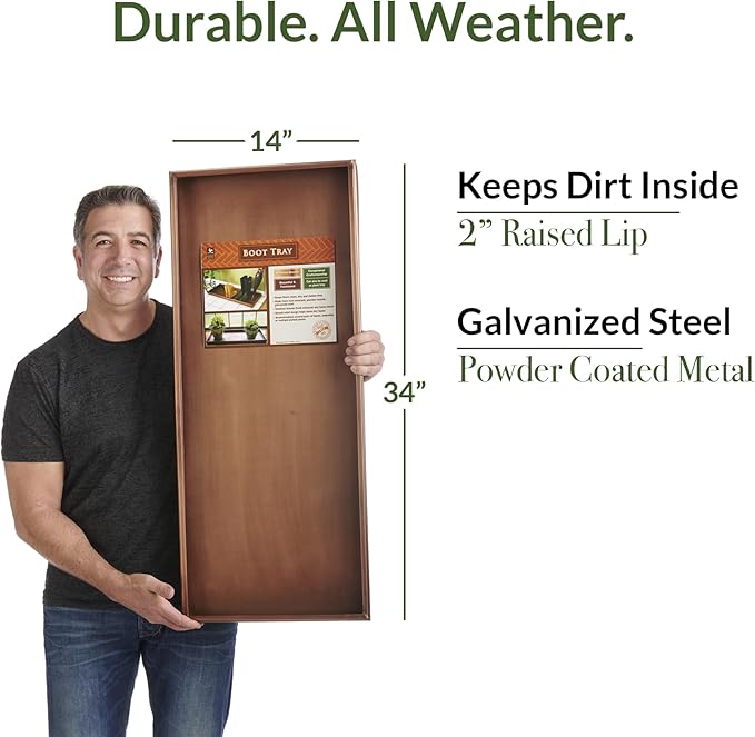 Good Directions Large Boot Tray, Classic Multi-Purpose All Weather Decorative Boot Tray, Shoes, Plants, Garage, Patio Door, Pet Bowls, 34 inch Entry Indoor Shoe Tray, Brown Copper Finish