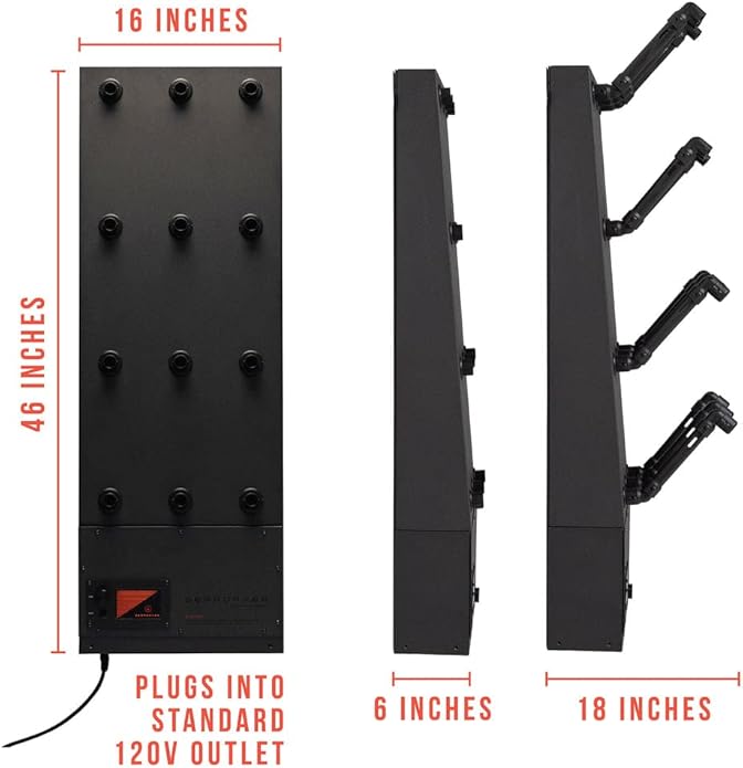 - SPECIFICATIONS Plugs into any 120-volt outlet--no professional installation needed | heavy-duty steel construction with a durable powder coat finish | 16” W x 6”D x 46”H | 46lbs
