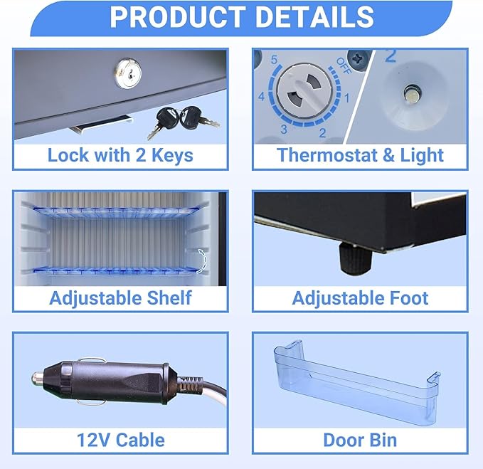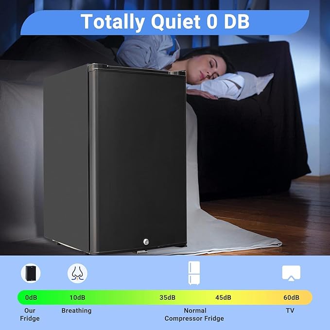 - [Function for Camper]: 12v Travel Refrigerator Fridge perfectly silent running with an advanced absorption cooling system. Automatic defrost, no noise, no freon, no pollution, no compressor