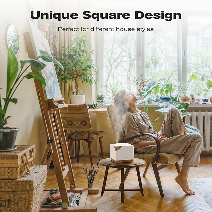 - Greatly Improves Living Space: Besides its uses in aromatherapy, this essential oil diffuser also functions as a humidifier. Use it to improve your home's atmosphere, cover the smell of pets or smoking, and protect your family from excessively dry season, static electricity, and more!