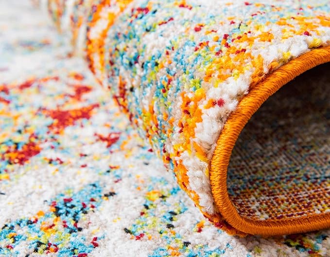 Unique Loom Rosso Collection Vintage, Traditional, Bohemian, Geometric, Distressed, Southwestern Area Rug (9' 0 x 12' 0 Rectangular, Beige/Orange)
