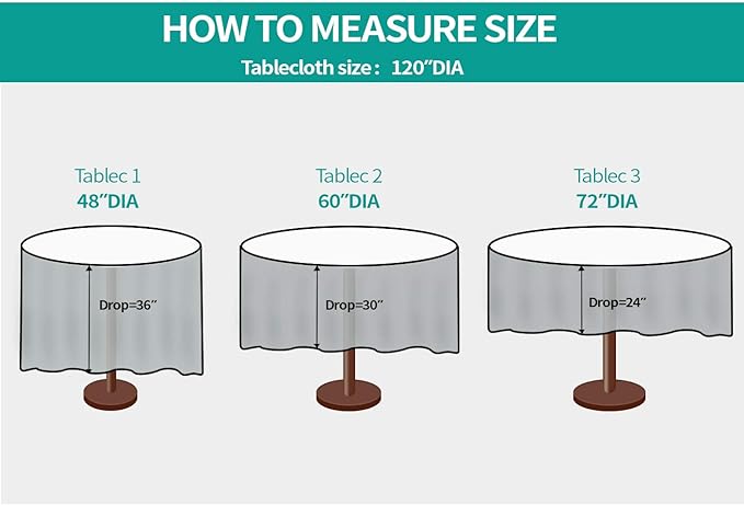 - Perfect size: This beige tablecloth for round tables is available in a variety of sizes to choose from, perfect to meet a variety of needs. Note: please measure the length of the table and reserve the length of the hem before purchase