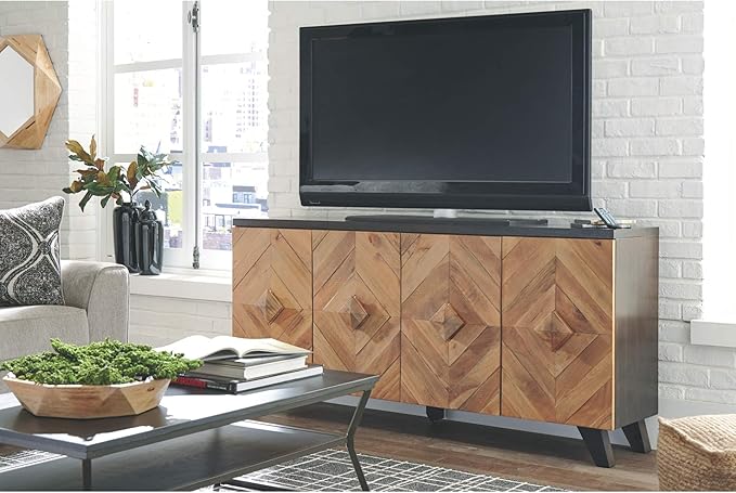 - CONTEMPORARY ACCENT CABINET: Allow your love for modern design to shine with the help of this stunning accent cabinet. The diamond-shaped plank effect adds rich, eye-catching dimension to your look