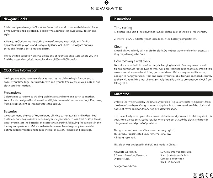 - Accurate and reliable quartz silent sweep movement with no ticking noise. If your hearing is particularly sensitive in a completely silent room you may hear a very quiet whirring. Requires 1 x high quality branded alkaline AA battery (not included).