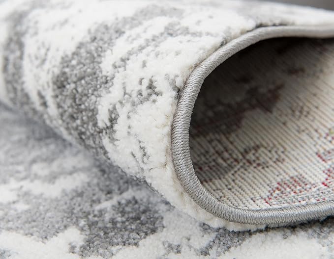 Unique Loom Rosso Collection Vintage, Geometric, Bohemian, Traditional, Distressed, Southwestern Area Rug, Rectangular 5' 0" x 8' 0", Light Gray/Ivory