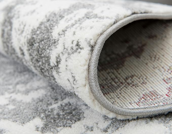 Unique Loom Rosso Collection Vintage, Geometric, Bohemian, Traditional, Distressed, Southwestern Area Rug, Rectangular 8' 0" x 10' 0", Light Gray/Ivory