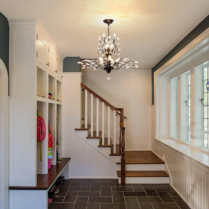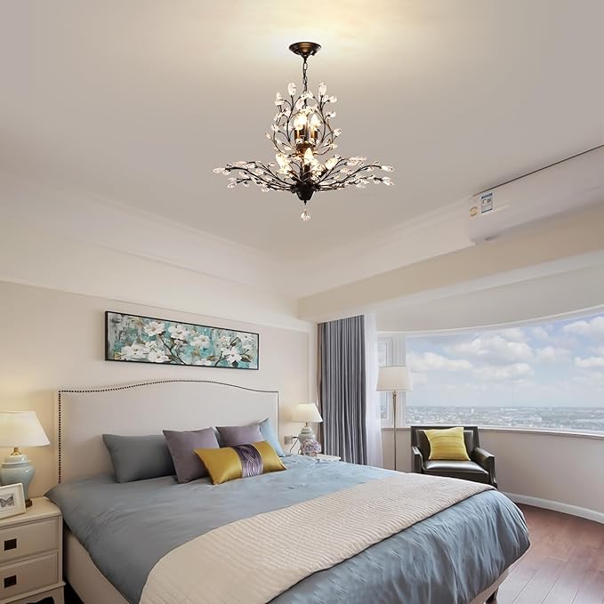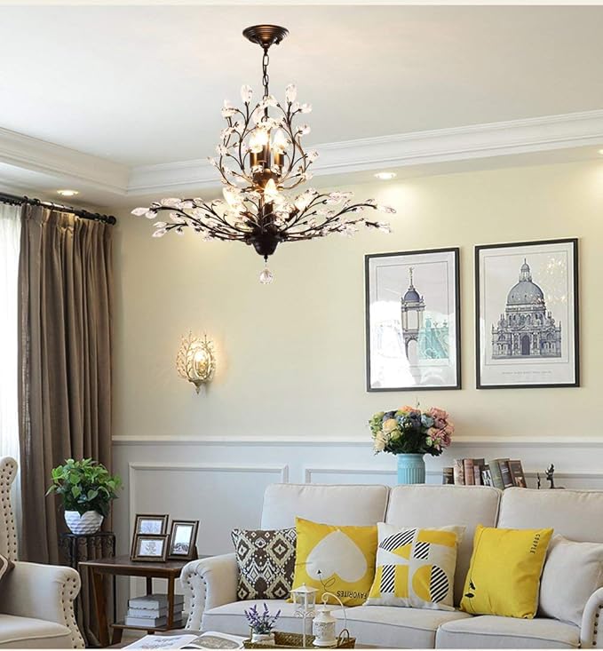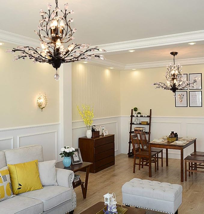 - ARTIST DESIGN: This vintage & modern crystal chandelier is beautifully decorated. Use transparent glass crystals to capture and reflect the light of the bulb. This chandelier light fixture can create a perfect atmosphere wherever it is placed! Push button switch, Paint Process, Stable performance, Long service life.
