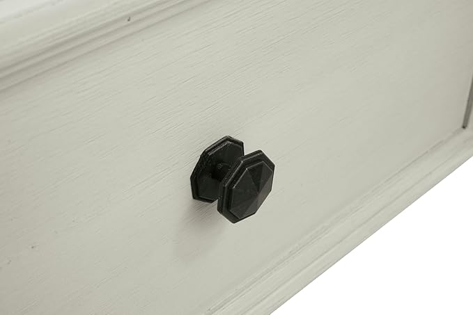 - HANDSOMELY CRAFTED: Made of veneers, wood and engineered wood. Designed with a two-tone antiqued finish, spring-lift top mechanism, 4 smooth-gliding drawers and casters for easy mobility