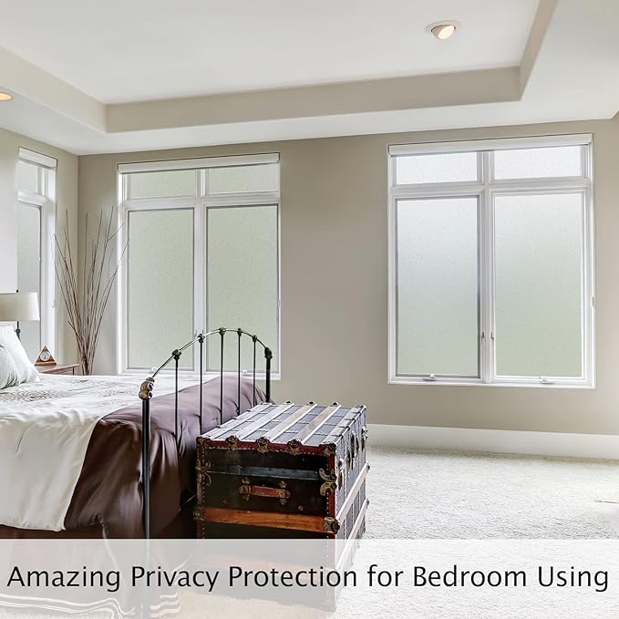 - ECONOMICAL FOR MULTI-SCENARIOS: No need to use heavy and expensive curtains or blinds, the glass frosting film is suitable for any FLAT, CLEAN, and SMOOTH glass door, window surfaces in the Bathroom, Balcony, Living Room, Bedroom, kitchen, balconie, cabinet, office, hotel etc. Note: Double-paned glass, cut glass and all processed glass is not workable for this frosted window film.