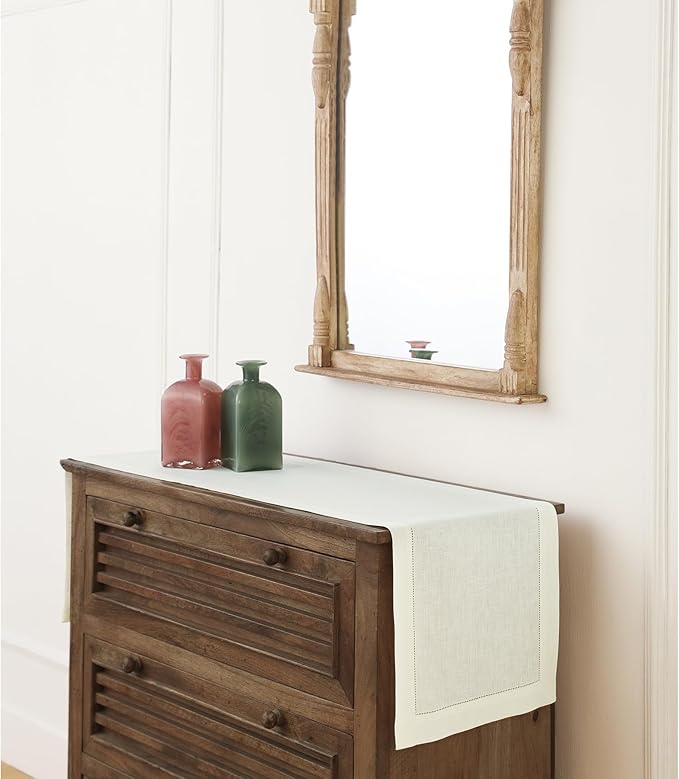 Solino Home Linen Ivory Table Runner 72 Inches Long - 100% Pure Linen Hemstitch Table Runner 14 x 72 Inch for Dresser, Dining, Fall, Autumn, Halloween, Thanksgiving - Classic Hemstitch