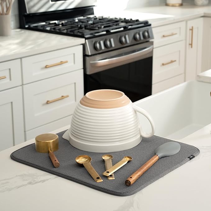 - Dish drying mat for kitchen counter protects surfaces from scratches and scuffs when placed under kitchen gadgets; multipurpose drying pads can be used as an appliance slider for a mixer or blender
