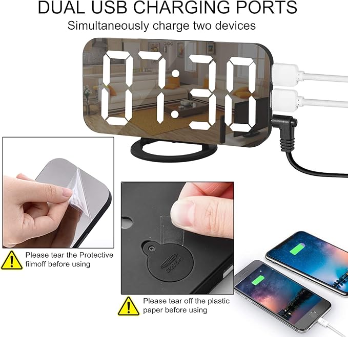 - DIGITAL ALARM CLOCKS MIRROR SURFACE: SZELAM alarm clock combines with makeup mirror, alarm clock and time display function. The HD mirror display can map your beauty, you can also use it as a mirror for your beauty and makeup while watching the time. The specially designed mirror surface is not easy to be stained with ash which can be cleaned with a single rub to restore the original clean appearance. You can put it upright, put it flat or hang it on the wall, just choose the way you like it