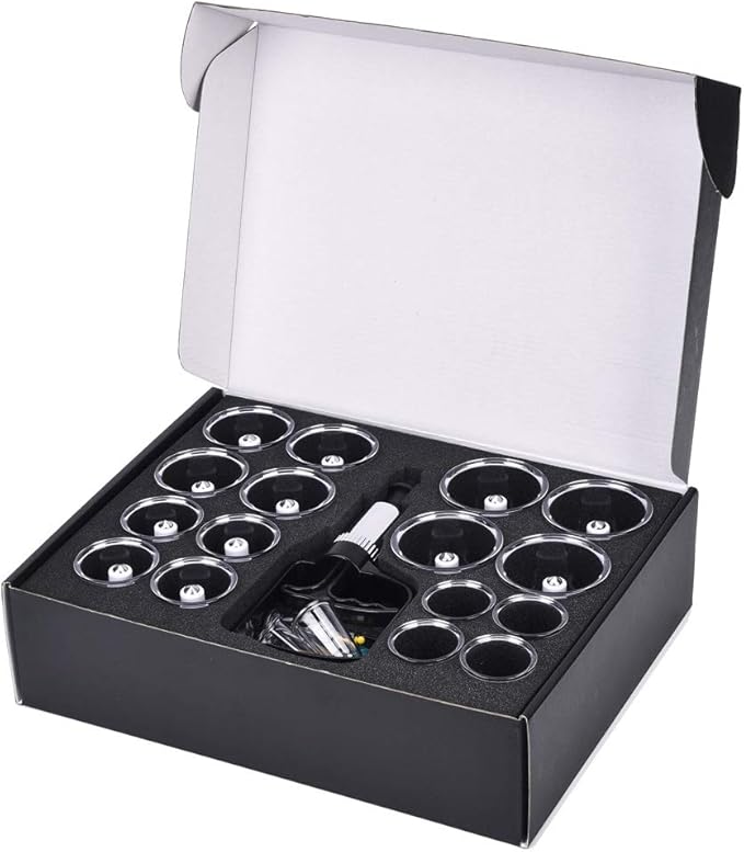 - Hijama cupping kit set include 22 pieces plastic cups: 2.75"(D)-4pcs,2.36"(D)-4pcs,2.04"(D)-4pcs,1.77"(D)-4pcs,1.38"(D)-3pcs,1.18"(D)-3pcs),hand pump, extension tube, gua sha scraping tool and massage oil.