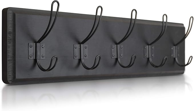 HBCY Creations Black Rustic Coat Rack Wall Mount with 5 Hooks, Solid Pine Wood 24 inch Wall Hooks for Entryway, Mudroom, Hallway, Bathroom - Vintage Farmhouse Style Wall Mounted Towel Rack