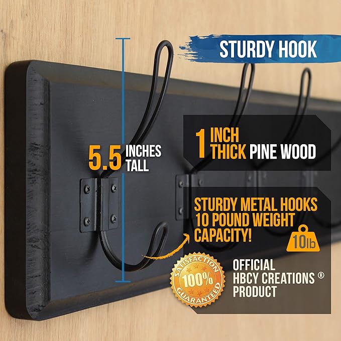 - Solid Wood and Metal Hooks: Made from solid pine wood, this 24" Rustic Coat Rack delivers a vintage farmhouse look. The durable metal hooks are perfect for hanging clothes, hats, purses, keys, and even a dog leash.