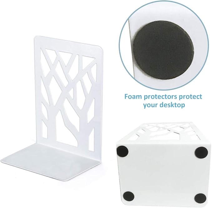 Book Ends, Bookends, Bookends for Shelves, Bookend, Book Ends for Heavy Books, White Metal Book Shelf Holder Home Decorative, Book Stoppers for Shelves, Bookend Supports 2 Pair