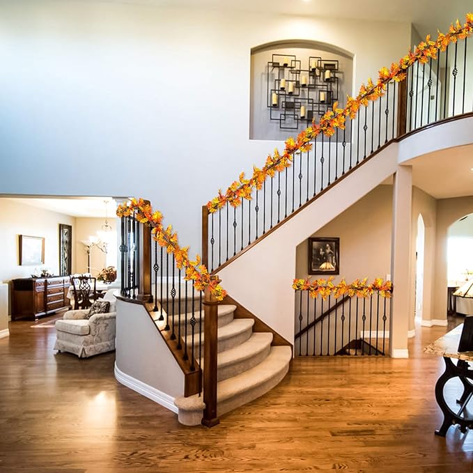 - 【Proper Length】-- 2 strand of 5.9 feet artificial maple leaf garlands, total length: 11.8 feet.