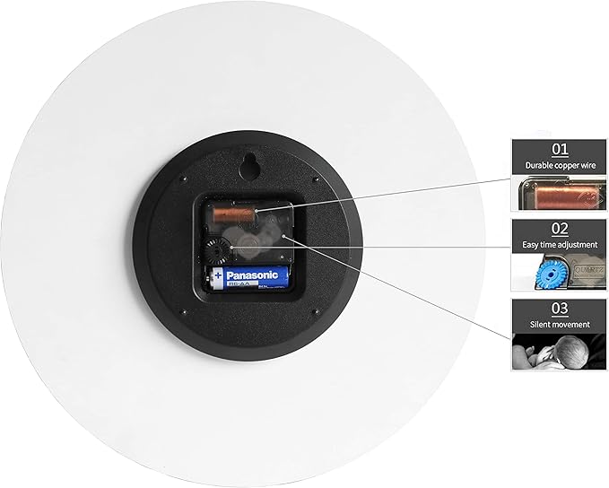 - Wall clock is completely silent thanks to a special Suzuki Spindle Silent Quartz Mechanism that features a continuous, high torque smooth sweep motion that completely eliminates any ticking noise which may distract or interrupt you or others in the room.