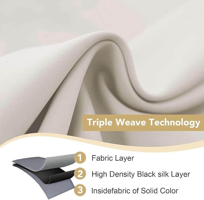 - MULTIPLE FUNCTIONS: These soft and durable curtains are made by innovative technology durable yarn, high performance on room darkening, thermal insulated, noise reducing, energy saving / efficiency and privacy protection