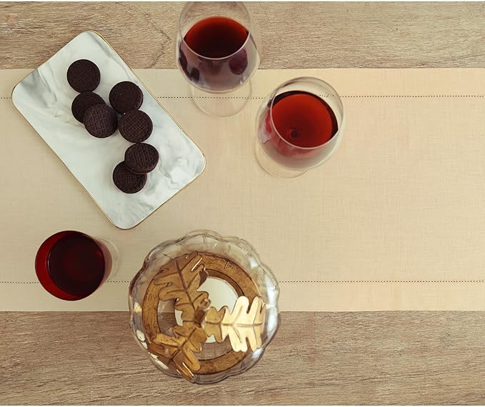Solino Home Linen Beige Table Runner 90 Inches Long - 100% Pure Linen 14 x 90 Inch Table Runner for Fall, Autumn, Thanksgiving - Classic Hemstitch