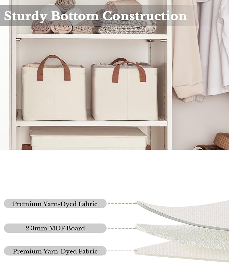- Premium Quality: Made from high-quality fabric and reinforced with a heavy-duty MDF bottom board and a sturdy metal frame. The solid construction enables the storage bins to stand upright without support, even when empty.