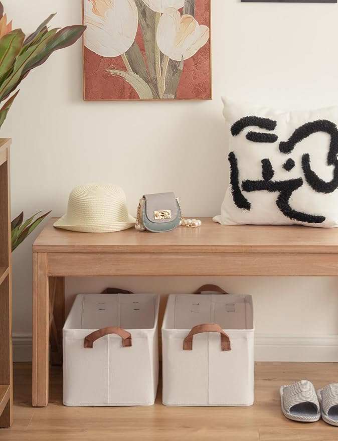 StorageWorks Storage Bins, Fabric Storage Bins for Shelves, Storage Baskets with Metal Frame, Closet Baskets and Bins with Handles, Natural Color, 2-Pack