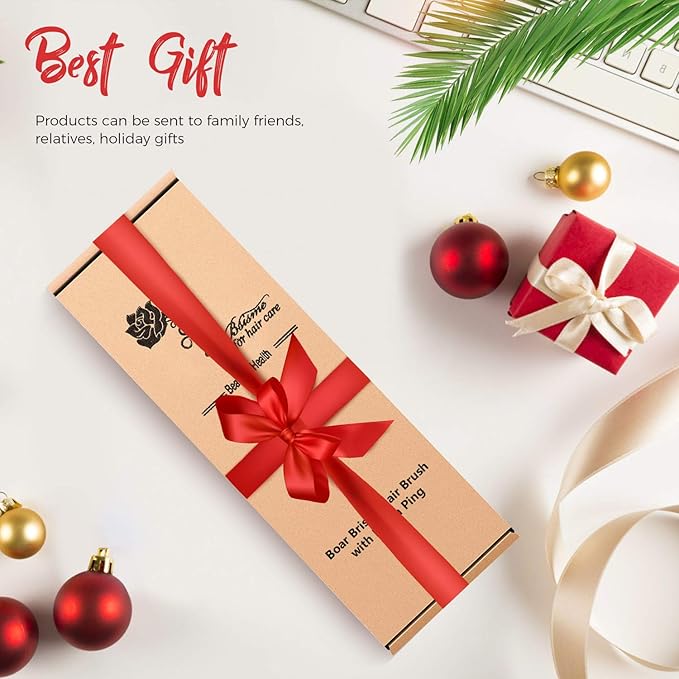 - HAIR BRUSH SET FOR HAIR CARE: More comfortable wooden paddle handle, soft rubber massage cushion implanted 70% boar hair and 30% nylon bristles. Gift package included a boar bristle hair brush