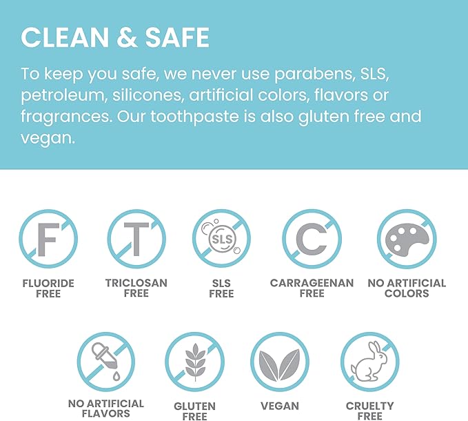- Thoughtfully crafted: This fluoride free toothpaste is formulated without sodium lauryl sulfate (SLS), triclosan, parabens, or carrageenan; an ideal vegan and gluten free tooth paste
