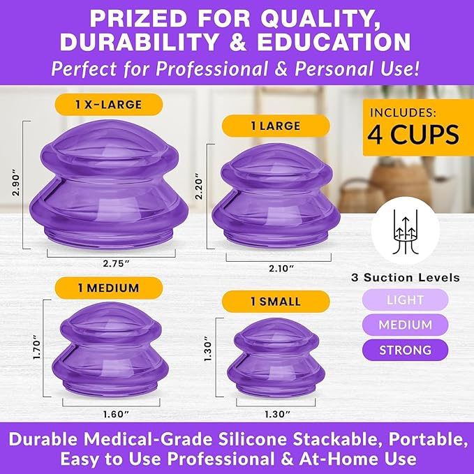 Silicone Cupping Therapy Set Professional Massage Cupping Cups for Cupping Therapy 4 Cup Kit for Massage, Myofascial Release, Cellulite Reduction (Lure Purple)