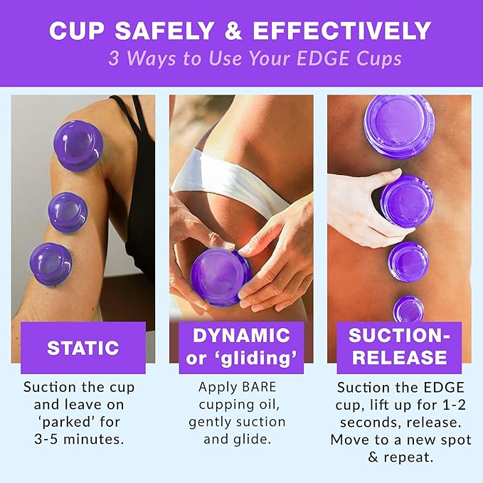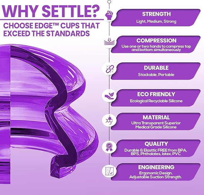 - Featuring our Lure Purple - The transparent joyful purple color of our EDGE cups allows for easy placement and monitoring during therapy sessions. Each EDGE cupping therapy set comes in a sleek, portable bag for easy storage and transport.