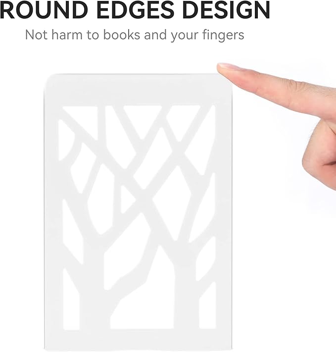 Book Ends, Bookends, Bookends for Shelves, Bookend, Book Ends for Heavy Books, White Metal Book Shelf Holder Home Decorative, Book Stoppers for Shelves, Bookend Supports 3 Pair
