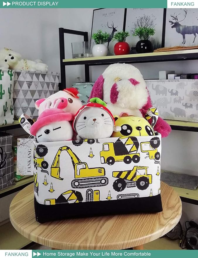 - Easy to carry: The lightweight canvas storage bins with handles allow you to carry your load easier. Wire-rimmed edges add form and stability. Help your kids clean up their act with our cute storage bins.