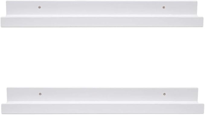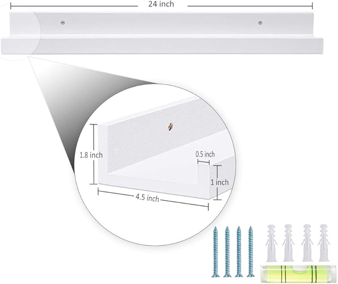 - Wall Mounted Picture Shelf: 24"in x 4.5in" x 1.8in"(LxWxH)Set of 2 wooden floating shelves.