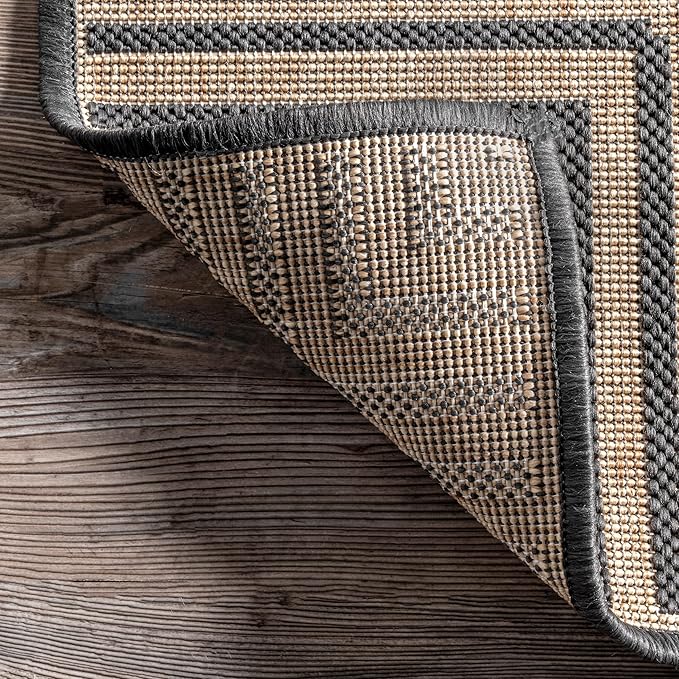 nuLOOM 6' 7" x 9' Outdoor Area Rug, Casual Design With Striped Border, Stain Resistant, Highly Durable, For Patio, Balcony, Bedroom, Living Room, Dining Room, Bathroom, Dark Grey
