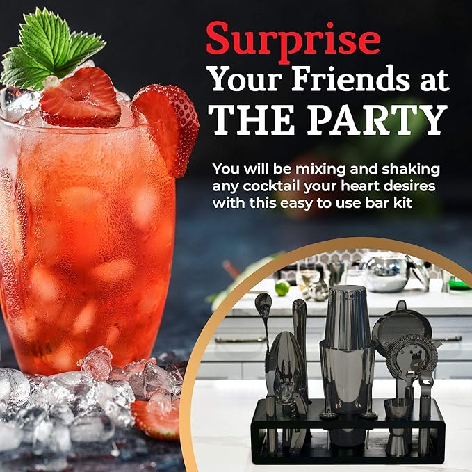 - ☑️THOUGHTFUL GIFT- Elegant in its design, it’s a wonderful gift for any cocktail mixer party you attend. Surely to wow your friends with your impeccable taste in design. This bartender set comes in a designed gift box, not an ordinary plain white one.