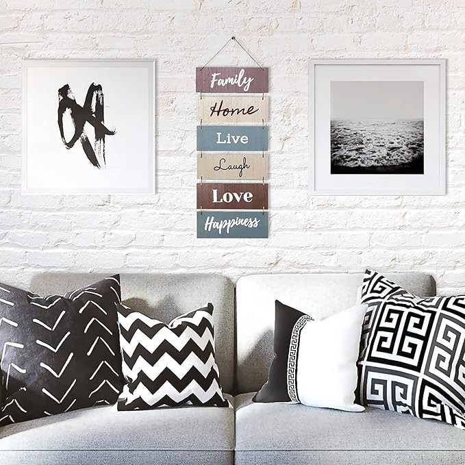 - Rustic Wall Decor This shabby chic wall décor sign brings a unique and elegant touch to your home This sign displays positive words that make you feel at home Family Home Live Laugh Love Happiness This farmhouse decoration has a wooden look that makes a perfect home accessory that is suitable for indoor or outdoor hanging