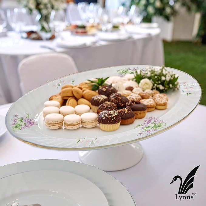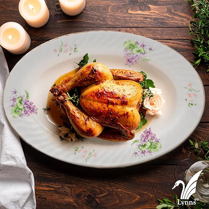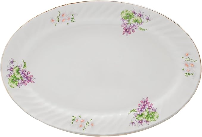 Lynns Paradise Marguerite 14-Inch Oval Platter, Set of 2, Purple; Heavy Duty; Chip Resistant; Lead and Cadmium Free; Freezer to Oven Safe up to 500°F