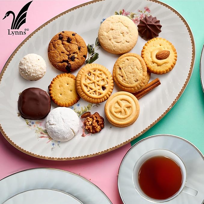 Lynns Paradise Timeless Rose 14-Inch Oval Platter, Set of 2, Pink; Heavy Duty; Chip Resistant; Lead and Cadmium Free; Freezer to Oven Safe up to 500°F