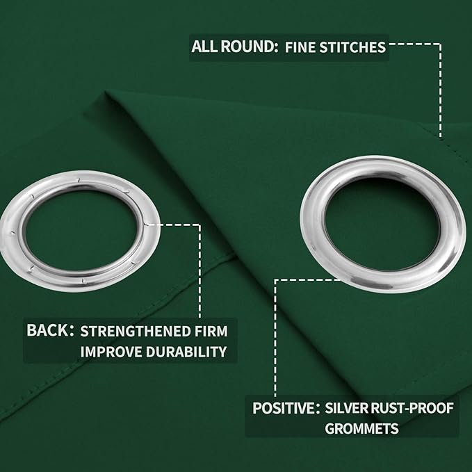 Easy-Going Blackout Curtains for Bedroom, Solid Thermal Insulated Grommet and Noise Reduction Window Drapes, Room Darkening Curtains for Living Room, 2 Panels (52x46 in,Dark Green)