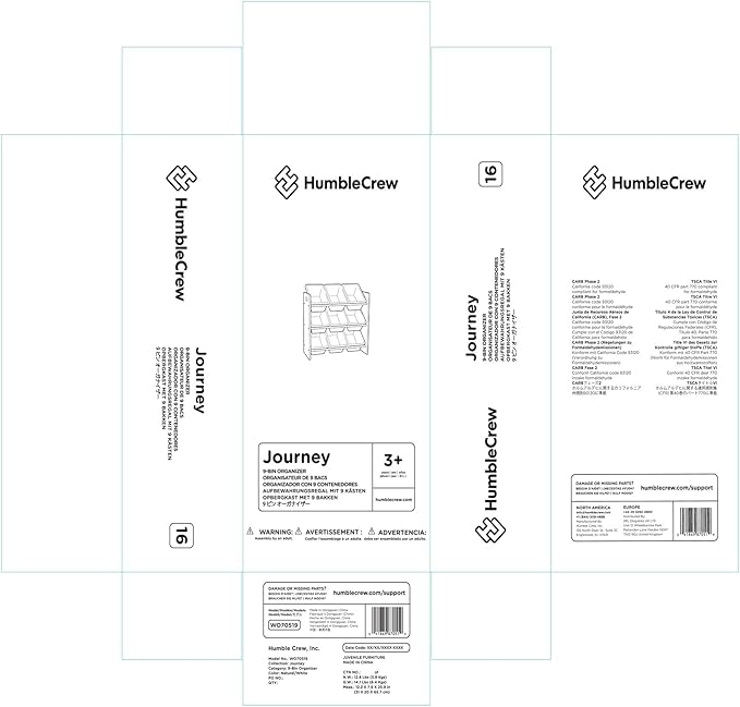 Humble Crew 9-Bin Toy Organizer – Journey Natural Wood with White Plastic Bins, 3-Tier Storage Solution for Kids' Playrooms and Nurseries