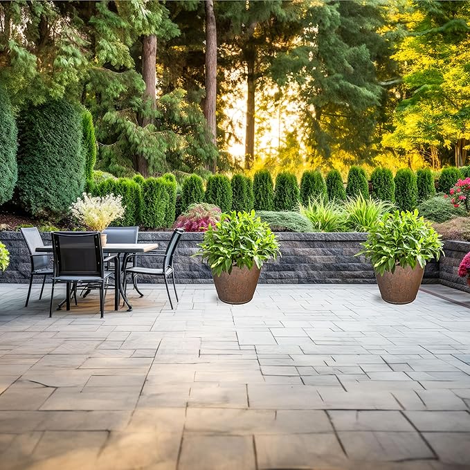 Sunnydaze 24-Inch Anjelica Large Plastic Pot for Plants - Outdoor Polyresin Round Planter with Drillable Drainage Holes - Rust - 4pk