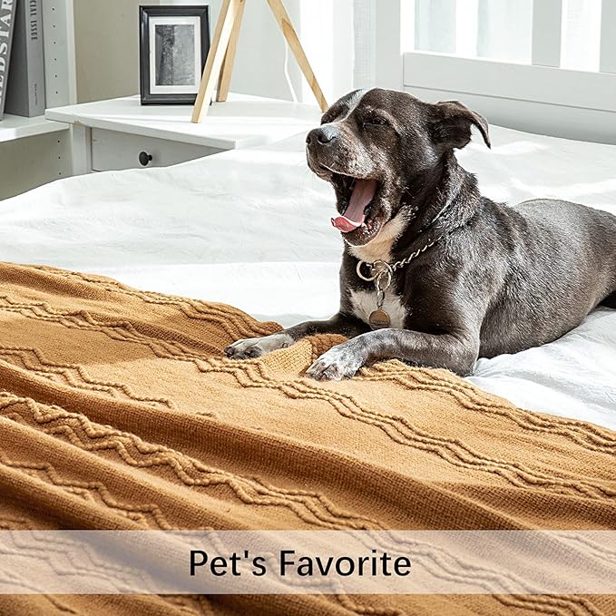 MIULEE Knitted Brown Throw Blanket for Couch,Boho Bed Decor Knit Outdoor Blankets Throw Size with Tassels Cozy Woven for Sofa Home Chair Wave Pattern 50" x 60" Inches