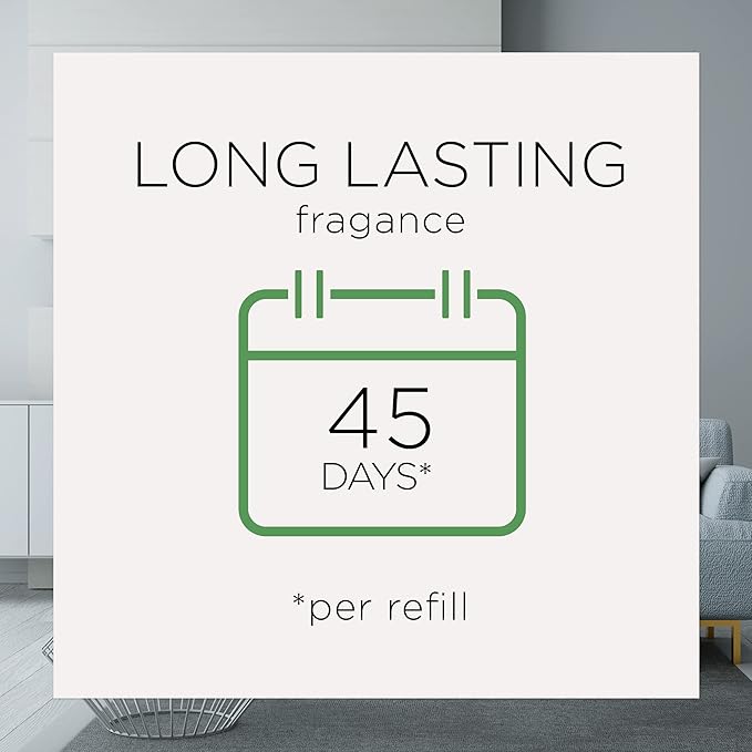 - VALUE: Each refill provides up to 45 days fragrance based on low setting, no need to add water, each refill comes ready to use, easy to change out the refills