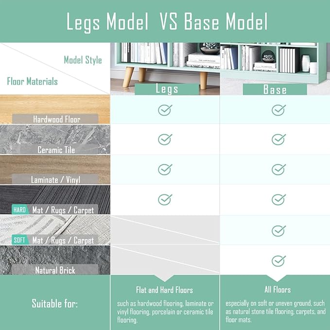 IOTXY Wooden Open Shelf Bookcase - 3-Tier Floor Standing Display Cabinet Rack with Legs, 10 Cubes Bookshelf, Tiffany-Green