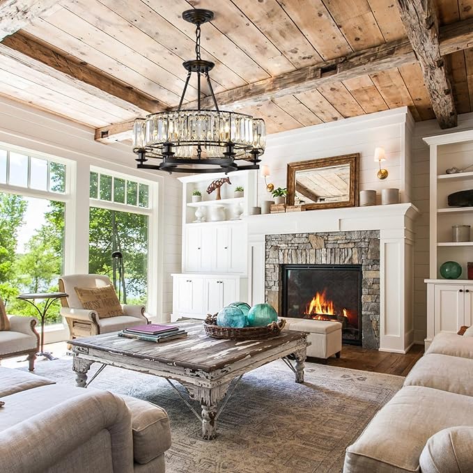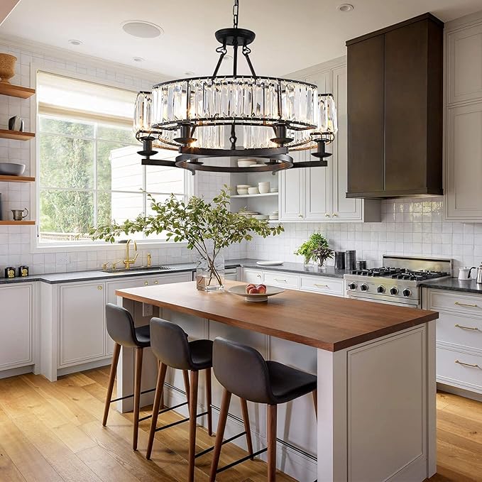- Retro and Luxury Design: This round modern rustic crystal chandelier combines of black metals and raindrop K9 clear crystal creating a rustic yet luxurious retro atmosphere. The lamp frame of this round chandelier is oil rubbed, which is anti-corrosive and rust-proof, durable, and easy to clean. Ideal for villa/restaurant/living room/dining room.